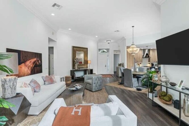 Absolutely gorgeous single family home, located in the Eagles Landing section of the prestigious gated Palm Beach Polo & Country Club. Situated on a large private premium lot at the end of the cul-de-sac, the home has so many outstanding characteristics . New kitchen with top-of-the-line appliances; all new lighting; new landscaping; freshly painted inside and out; engineered hardwood floors through-out; Plantation shutters; FULL floor to ceiling impact doors and windows. Beautiful indoor/outdoor living space and private backyard w/heated pool. This captivating 3 Bed/3.5 Bath home is nothing short of extraordinary. It features not one, but 3 bedroom suites, each complete w/en-suite bathroom. Impeccably designed with a stunning open floor plan and gourmet kitchen.