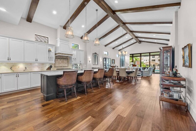 Discover Watercourse, an enchanting enclave of 29 Spanish eclectic single-family residences by Distinctive Communities, with western exposure over Talis Park's Lake II Corso, across from the Amalfi Coast-inspired Toscana neighborhood. The stunning Enna I floor plan boasts 3,638 square feet under air and 4,568 square feet total, featuring four bedrooms, four baths, a spacious great room, an island kitchen and an inviting upstairs loft. The layout includes a primary suite and a versatile guest suite and study on the main floor, with two additional en-suite bedrooms upstairs. Enjoy seamless indoor/outdoor living with a custom kitchen that opens to a private outdoor space overlooking the water, complete with a custom outdoor kitchen, electric screens, a saltwater pool and spa, and a cozy fire pit. Elegant interior finishes include mother of pearl tile accents, Bella Cita wood flooring and Cypress beams in the main living area. The kitchen features upgraded cabinets with X light glass doors, a large granite island and buttercream Pompei quartz countertops. The luxurious primary suite offers Everest marble countertops, double sinks, an upgraded mosaic tile shower and two spacious custom closets. Watercourse promotes a vibrant in the village lifestyle, just minutes from the amenity core, including the Vyne House clubhouse, which offers formal and casual dining, fitness studios and a resort-style pool overlooking the 18th green. Nearby, the Talis Park Sports Complex features five lighted Har-Tru tennis courts, four pickleball courts, a tennis pro shop, bocce courts, a two-lane lap pool and a dog park. Watercourse is not just a home, it's a beautiful lifestyle!.