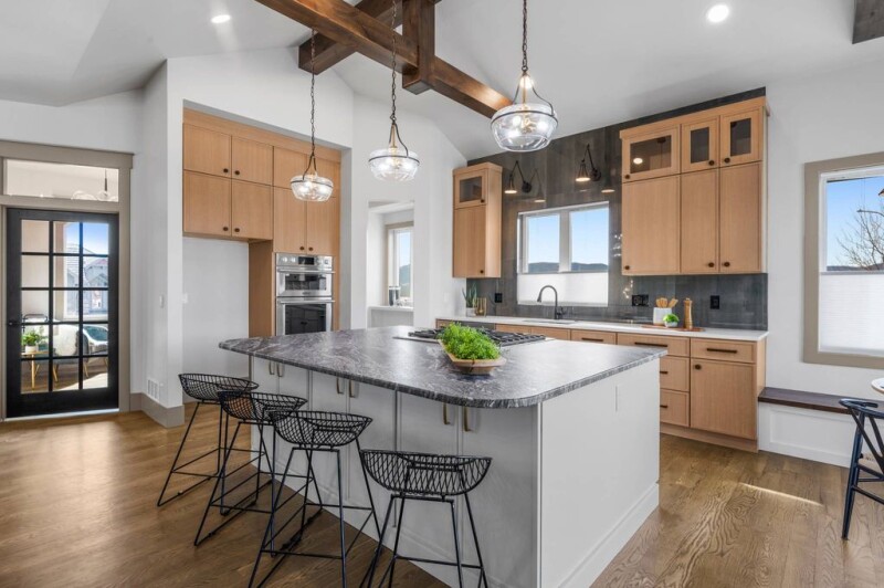 You don’t have to leave Colorado Springs to experience a taste of Europe with this exquisite custom European Cottage by Stone Cottage Home. The open floor design injects relaxed elegance into the chateau-style architecture quintessential of the French countryside. Enter into an intimate receiving area with a dedicated alcove for hanging coats and dropping your keys before stepping into the expansive great room with Oak wood floors, anchored by a gas fireplace and peek-a-boo railing highlighting dramatic light fixtures in the basement stairwell. To the left a keeping room with built-in cabinetry and a curved picture window framing breathtaking views of Pikes Peak to use as a library, reading room or sacred spot to sit coffee. Designed for both function and beauty, the gourmet kitchen is a culinary masterpiece with oversized island in leathered granite, an eat-in breakfast nook, and vaulted ceilings with exposed wood beams. A scullery kitchen and walk-in pantry finish the space and make entertaining effortless. Apart from the great room is the main level primary suite with spa-inspired bathroom and two separate walk-in closets. Downstairs, the expansive basement features a divided family room perfect for a media area and seperate game space. A wine room with cork flooring provides a sophisticated touch for collectors and enthusiasts alike. Three additional bedrooms, plus a fourth flexible space that can serve as an office, workout room, or extra bedroom, offer ample accommodations for friends and family. Another full bathroom finishes the basement. Located in the prestigious Flying Horse neighborhood, this home offers unparalleled access to a championship golf course, exclusive clubhouse, resort-style pool, and fine dining experiences. Bring your European fantasies to life in this home that is more than just a house - it’s a statement of lifestyle.