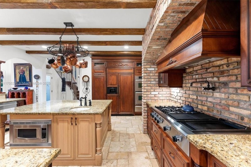 WELCOME TO GRAND OAKS IN DAVIE! This stunning lakefront estate sits on a builder’s acre. Offering 5 bedrooms, an office, loft, and 5.5 baths. This exclusive community features only 32 custom homes. Enter through soaring 20’ ceilings in the foyer, living, and family rooms, both with fireplaces. Enjoy wood, marble, and Jerusalem stone finishes. A custom bistro bar, hand-painted murals, and Chicago brick accents enhance the kitchen and butler’s pantry, with a Thermador gas cooktop, grill, and pot filler. The in-law suite has a private entry and cabana bath. The lush, tropical yard boasts mature landscaping, a resort-style pool with a waterfall spa, a summer kitchen, all-impact glass, a 48KW generator with a 1,000-gal tank, and a 250-gal tank for the BBQ, cooktop, and fireplace.