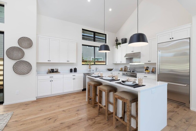 Discover an exceptional opportunity in the Sonoma Wine Country with this stunning custom-built home, boasting 3,000± square feet of elegance. Seize the chance to own this magnificent property, nestled in the heart of Healdsburg. Step inside to find a meticulously designed four-bedroom, 3.5-bathroom layout, crafted for modern living. The spacious floor plan is highlighted by dramatic two-story vaulted ceilings in the dining and family areas, creating an atmosphere of grandeur. This stunning property offers an unbeatable location just a short 1± mile walk from the renowned Healdsburg Plaza, Michelin-starred restaurants, world-class wineries, and boutique shopping. The nearby Foss Creek Path adds to the convenience, offering easy access to outdoor recreation. The heart of this home is the chef’s kitchen, featuring custom-built Douglas fir cabinetry, sleek quartz countertops, high-end Bertazzoni appliances, and a large breakfast bar island. Ample storage is provided by a pantry closet and an additional storage closet, making it both functional and elegant. This open-concept home boasts high ceilings and vertical grain Douglas fir doors throughout. Enjoy the warmth and beauty of white oak hardwood floors and energy-efficient LED recessed can lighting. Designed for modern living, the home is solar-ready, with panels already installed, and includes a generator hookup. The spacious 2-car garage is EV-ready. The layout is ideal for comfort and privacy, with two primary bedroom suites with one conveniently located on the first floor. Primary bedrooms offer ensuite bathrooms with a walk-in closet, dual sinks, ceiling fans, and tiled floors. Step outside to a serene, porcelain-tiled patio, complete with zoned irrigation for ease of maintenance and ready for your creative design for the perfect landscaped yard. Experience the epitome of Wine Country living and California sunshine in this remarkable open and airy home, perfect for entertaining guests or simply enjoying quiet moments of relaxation.