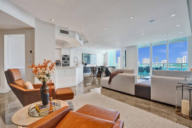 Experience the epitome of luxury living in this beautifully stylish & fully renovated condo, offering breathtaking views of the Ocean, Intracoastal, & City from both East & West facing balconies. W/elegant marble flooring throughout, this expansive 3,524 SF floor plan features a generous great room, formal dining room, open concept kitchen, media room/den, oversized primary bedroom, powder room & laundry area. This condo includes 1 assigned covered parking space & a storage room. Indulge in five-star amenities, including two pools, barbecue areas, two gyms, social lounges, play area, tennis/pickleball courts, 24-hour security, complimentary valet parking, dog park, coffee/deli shop, & much more. Located just minutes from Aventura Mall, this condo is a perfect blend of luxury & convenience.
