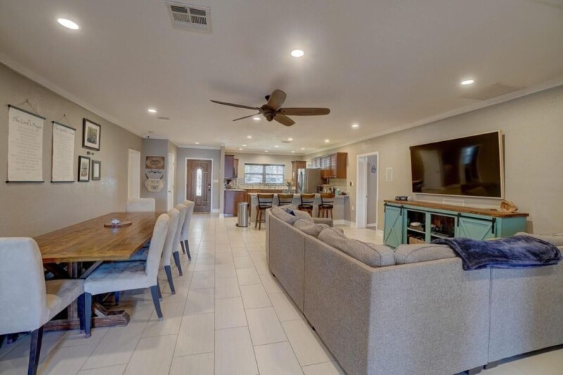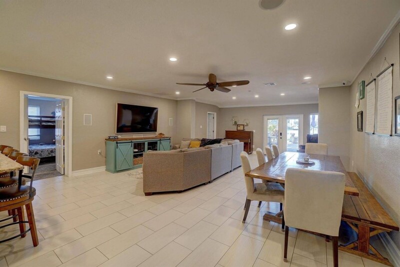 Nestled along the serene shores of Half Moon Lake, this stunning waterfront home offers a rare blend of tranquility and modern comfort. With 60 feet of lake frontage and the ability to enjoy boating right from your backyard, this is the ultimate retreat for those who crave both relaxation and adventure. Step inside and be greeted by an open floor plan designed for seamless living. The expansive living room, measuring an impressive 29x21, is flooded with natural light that dances across the elegant ceramic tile flooring. Sliding doors lead to an enclosed patio and deck area, perfect for soaking in the breathtaking waterfront views or entertaining guests as the sun sets over the lake.