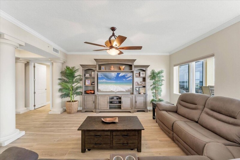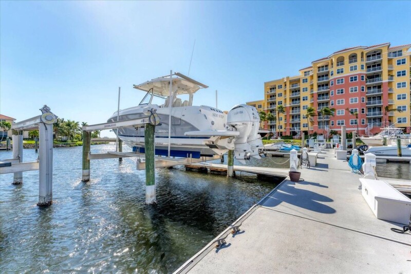 Penthouse with private two-car garage and deeded boat slip. No hurricane damage and no flooding. Welcome to Laguna at Riviera Dunes, a 24-hour guard-gated resort-style waterfront sanctuary with breathtaking panoramic views of the Manatee River and the Riviera Dunes Marina. This fabulous marina-front, one-story end-unit penthouse features 3,600 square feet of living space, three bedrooms, 3.5 baths, a private den-office, and two covered lanais at 306 square feet for you to enjoy the most spectacular sunrise views, fireworks, evening music and activities at the marina through the Laguna gated walkway to Riviera Dunes Dockside bar and grill. Experience some of the best boating and fishing the West Coast of Florida has to offer from your 45-foot deeded boat slip that can hold up to a 50-foot boat with a 24,000-pound lift. This penthouse also comes with a private two-car garage, a rare find in condominium living. The floor plan is light, bright and open with 9-foot floor-to-ceiling hurricane-impact windows and sliding glass doors that accentuate the amazing views. The spacious eat-in kitchen with granite countertops, stainless steel appliances and beautiful wood cabinetry opens to the family room with both offering amazing water views. The great room and open dining room are spacious with plenty of room for large gatherings and entertaining. The large office/den with double-door entry and half bath make the options for this space endless including a home gym, library, theater or additional guest room. The primary suite has peaceful marina views, a private balcony, two walk-in closets and an en-suite bath complete with/ dual vanities, a soaking tub and walk-in shower. All bedroom suites are split plan layout. Laguna at Riviera Dunes is pet-friendly, maintenance-free and offers a waterfront heated pool and spa, clubhouse, fitness center, outdoor pavilion with two grills, electric car charging stations, tennis, pickleball and basketball as well as plenty of guest parking. The 18-foot-deep harbor is one of West Florida's best hurricane-protected harbors. Enjoy boating and fishing on the Manatee River with direct boat access to the Intracoastal Waterway and the Gulf. The convenient location gives easy access to downtown Sarasota, St. Armands Circle, Anna Maria Island, St. Petersburg, pristine west coast beaches, major airports, and local shopping and fine dining. Enjoy the new full-service Marriott Hotel offering restaurants and bars or get pampered in their new spa. Don't miss the opportunity to make this exceptional condominium your new home!.