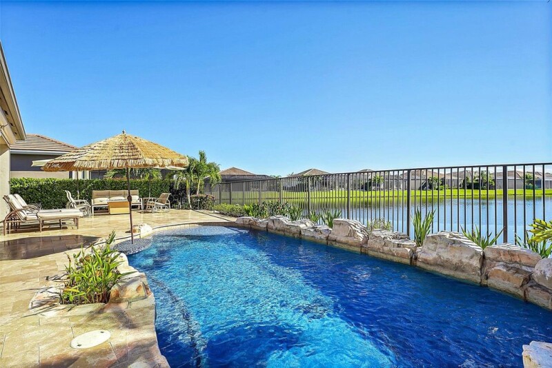Get ready to fall in love with this comfortable & stylish lakefront home perfect for entertaining inside & out! It features a chef’s kitchen, formal dining room, & a spacious travertine deck. A quartzite & stainless outdoor kitchen under an extended lanai includes a matching firepit for chilly nights! Smart features control & activate the waterfall saltwater pool in your backyard haven. Remotely open & close screens, blinds and curtains. Soothing colors inside create a relaxing atmosphere in the great room and ensuite bedrooms. Tall impact windows invite your eyes back outside to sweep the long lake southern view. The 3rd garage is a temporary full gym hard wired for AC. 3rd bdrm used as office. Nearly a 1/4 acre complete this large premium lot in Riverland’s amenity rich adult playground.
