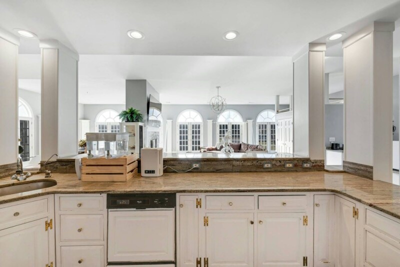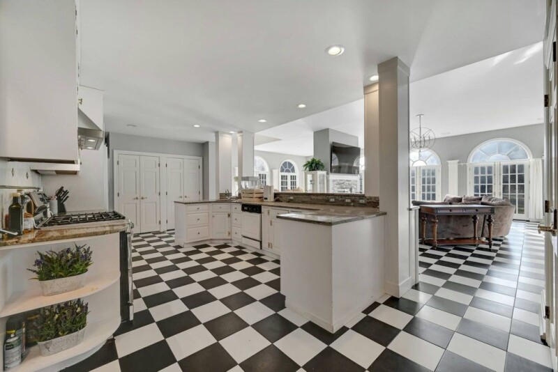 A rare find, almost 1.6-acre-level property. Good setback with circular driveway. This timeless, elegant home offers a center-hall marble foyer. Gracious living room w/fireplace, large window overlooking the private backyard. Formal dining room w/Bay window. An extra big office w/skylite & lots of windows, a marble fireplace, and French door exit to the patio. A nice room for working and relaxing. Gourmet kitchen with granite countertops. Open layout consisting of a 2-story great room, walls of windows, dual fireplace, outside entrance, mud room & powder room. 2 formal stairways access to the finished basement. The 2nd fl. features 4 bedrooms, 2 updated baths & a laundry Room. 3rd fl., the primary suite includes an updated bath, soaking tub, separate shower, and large closets. The lower level has finished Rec. rooms, Wine cellar, Bar, Sauna, office, full bath & laundry. This Charming home provided an in-ground pool and a tennis court. ( As is ) 2-car garage, carport, & storage.