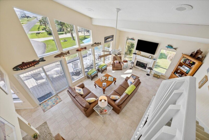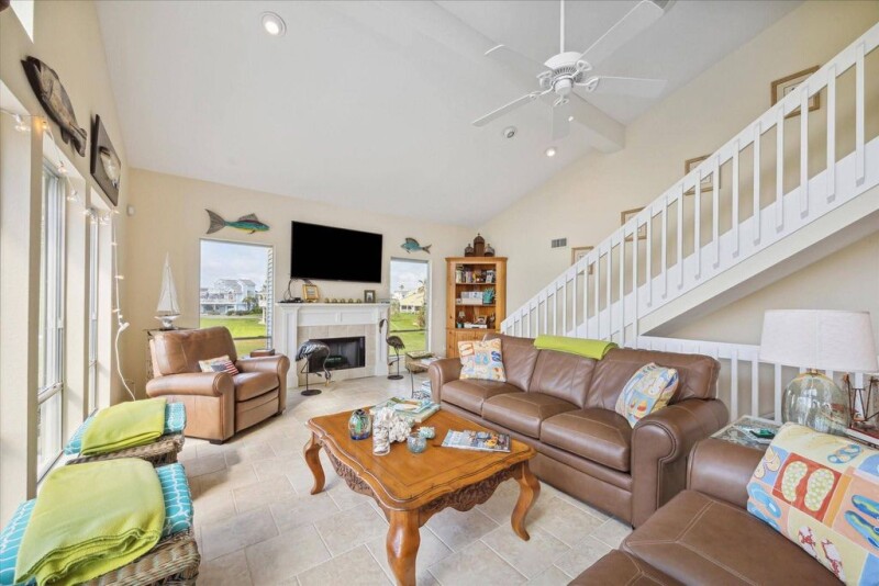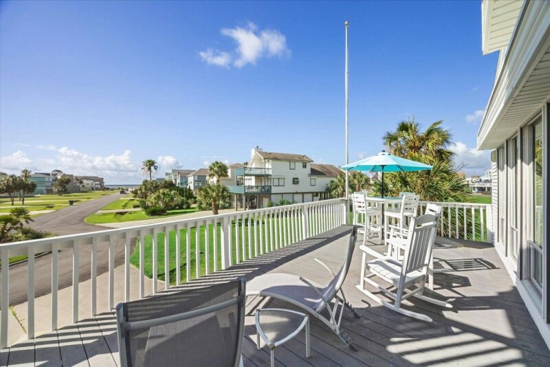 Ideally situated on a cul-de-sac lot with great beach views, this updated two-story is located on an oversized lot in Pirates Beach. High ceilings and an open floorplan contribute to the beachy, coastal feel, while walls of windows showcase the view of the Gulf. The main level features living, dining, and updated kitchen plus two guest bedrooms and a full bath. Upstairs is the primary bedroom with a large, updated bath plus an additional guest bedroom with a full bath. Lot next door also for sale, separately. Galveston Country Club social membership conveys.