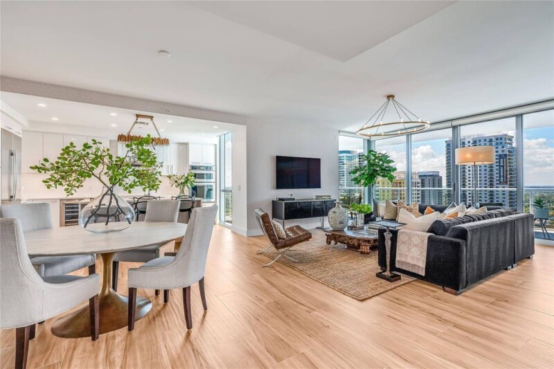 Curated to Perfection! Experience luxury living at its finest in this stunning 26th-floor residence at 100 Las Olas! Unit 2604 showcases the building’s most sought-after floor plan, blending warm sophisticated design with premium upgrades. This spacious 2-bedroom+den/office (or optional 3rd bedroom), 3-bath home features an open layout and 550 sq ft of outdoor terrace with breathtaking views. Highlights include wood-look porcelain flooring, induction cooking, whole-home water filtration, motorized blinds, designer lighting, custom built-ins & closets, and two premium side-by-side parking spots. Enjoy five-star amenities and the vibrant energy of Las Olas. Furniture is available for separate purchase for a seamless move-in experience.