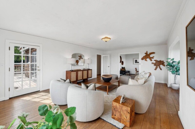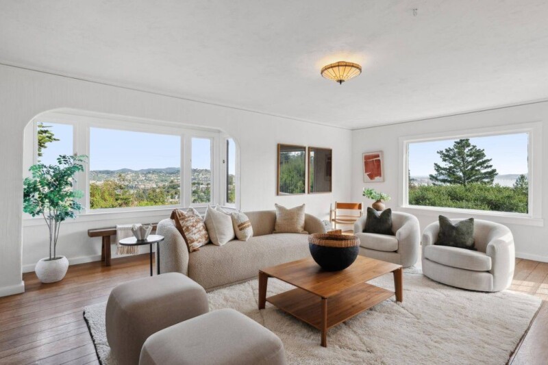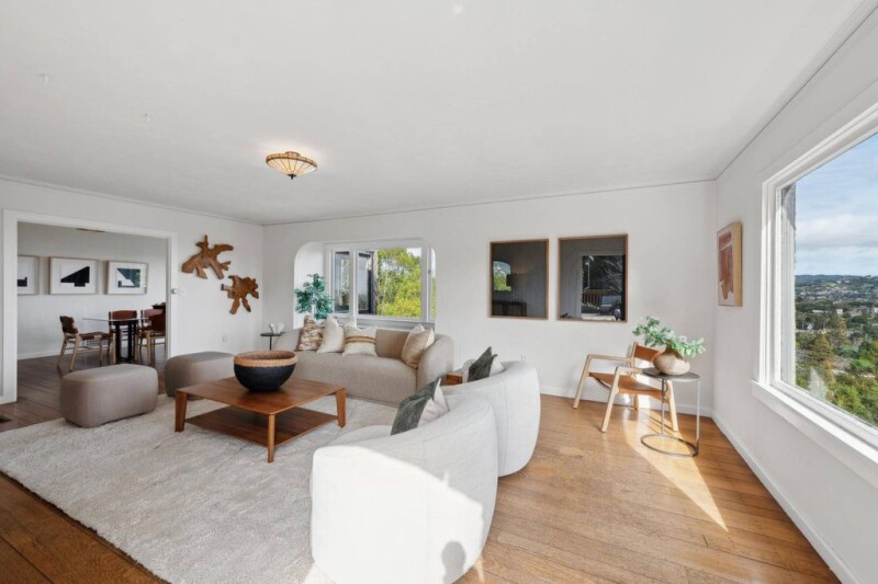 Prime elevated location, this home offers an unparalleled vantage point over the San Francisco Bay, with sweeping panoramas that stretch across Larkspur, Corte Madera, and Greenbrae. Designed to embrace its stunning natural surroundings, expansive windows flood the home with sunlight, framing the beauty of morning sunrises and tranquil bay vistas. Inside, the home’s main living areas exude openness and light. The spacious dining room, with large windows, captures the surrounding Marin landscape, while the inviting living room seamlessly extends to a deck, creating an effortless indoor-outdoor flow. The well-appointed kitchen, complete with a picture window above the sink, enhances the sense of openness while bringing in more natural light and showcasing the scenic views. The main level hosts three versatile bedrooms, one of which features a cozy reading nook and private entrance. The upper-level primary suite is a true retreat, resembling a secluded treehouse, complete with a gas stove, private deck, and panoramic Bay views. For those seeking a quiet workspace, a separate lower-level office with a private entrance offers privacy and focus. The legal one-bedroom, one-bath ADU provides flexible options for guests, extended family, or rental income. Outside, a sun lover’s deck sets the perfect stage for alfresco dining, while terraced grounds offer space for gardening and relaxation. A variety of outdoor areas provide both privacy and flexibility for entertaining. Just up the road, Blithedale Loop Road connects directly to scenic trails leading to Mt. Tam. Located just moments from Corte Madera’s vibrant town center and with quick access to Highway 101, this exceptional residence offers a blend of privacy, convenience, and natural beauty—a haven for those who seek both tranquility and connection to the heart of Marin.