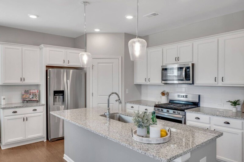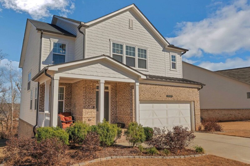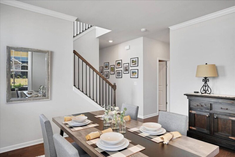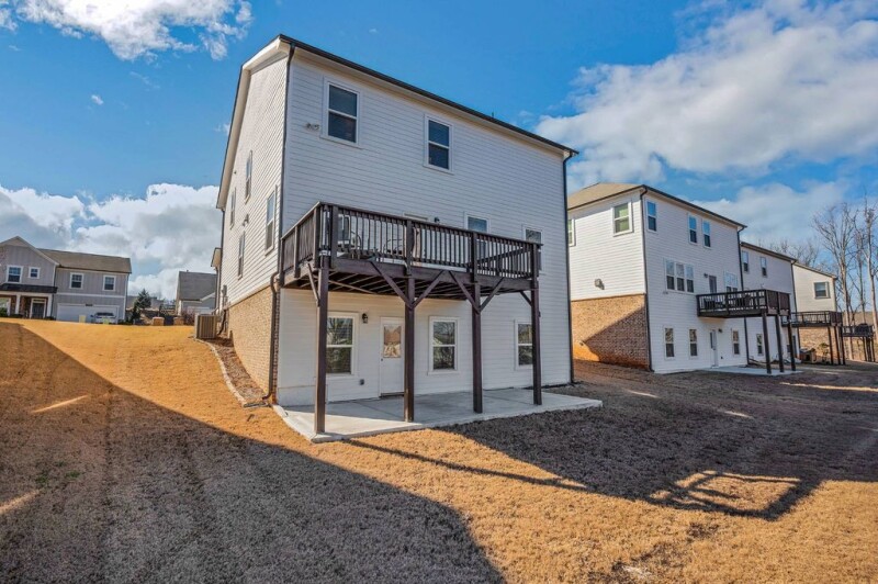 Stunning two-story home with an unfinished basement all ready for your design. Featuring an open-concept kitchen and family room, this home seamlessly extends to a large deck overlooking serene woods and a small creek. The spacious, level backyard provides ample room for outdoor enjoyment. On the main level, you'll find a guest bedroom and full bath, along with a versatile living room/study/flex space. Upstairs, the owner’s suite boasts a double vanity and walk-in closet, accompanied by three additional bedrooms and a large loft with endless possibilities. The chef’s kitchen is equipped with stainless steel appliances, a walk-in pantry, white cabinets with gray island cabinetry, granite countertops, and hardwoods throughout most of the main floor. Bathrooms are beautifully finished with tile flooring. Brookview is an award-winning community offering picturesque streetscapes, lush green space, and breathtaking mountain views. Amenities include a pool, playground, cabana, four tennis courts and pickleball. Car-free distance to the Publix shopping center at Matt Highway and Bannister Road. Please note, some images have been virtually staged.