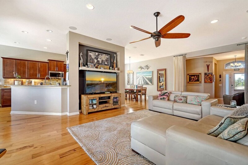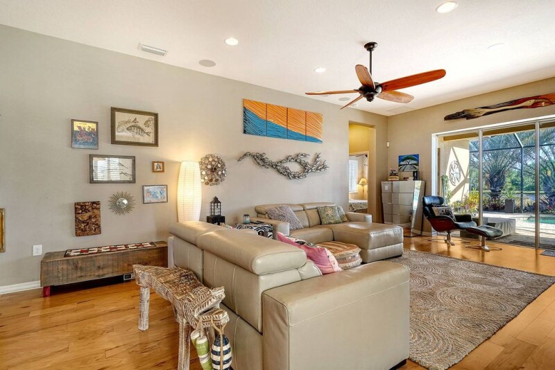 Breathtaking full lake views in this three-bedroom, two and a half-bath plus office in Grand Palm.As you look across the vast serene lake there are no homes, just a natural shoreline.. Entering into this home you see tranquil water views that invite you in. The generous-sized great room opens up onto the screened-in pool area. As you relax in the pool, you take in the serene views while enjoying privacy in the caged-in area and natural vegetation that surrounds the lake. Gorgeous hickory floors adorn this special home with upgraded cabinetry, granite countertops, stainless steel appliances and a natural gas range. Plantation shutters are throughout. Surround sound speakers are in the great room and the lanai is wired for them. This Windsong Model plan offers privacy with the split plan and has an office centrally in the home. The breakfast nook off the kitchen overlooks the lake, while the dining room accommodates a larger table and a private dining experience. Grand Palm includes a fully equipped fitness center and clubhouse, two resort-style heated pools and spa, and over 25 miles of recreational and bike paths. We also have two dog parks tennis, bocce, basketball and beach sand volleyball courts. There is a large playground and splash park, kayak storage and launch on a 32-acre serene lake. Grand Palm is the ultimate in resort-style Florida living and is golf-cart friendly as well. Downtown Venice and the beach are just 15 minutes away. Wellen Park with shopping and dining and the spring training home of the Atlanta Braves gives you an abundance of things to do!.