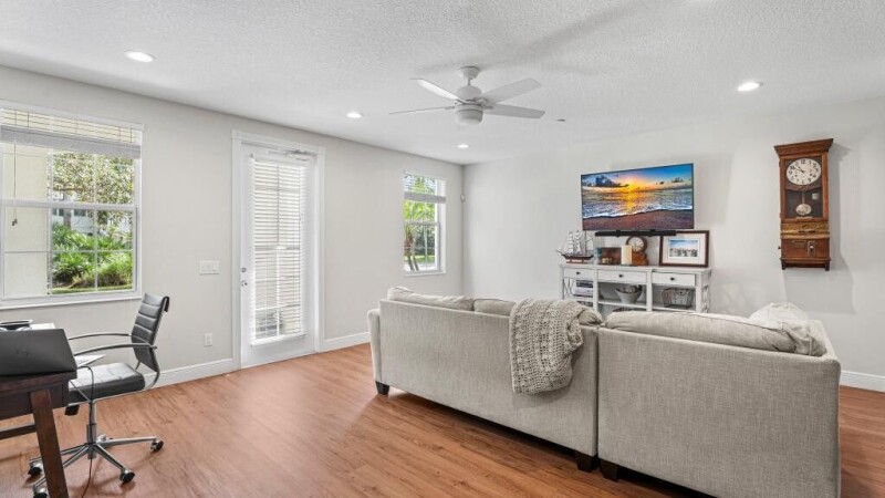 Come see this beautiful 3 story townhouse in the gorgeous Martinique neighborhood of Abacoa! A 3 bedroom, 3.5 bath, with an oversized flex room on the first floor that can be used for a secondary family room, office space, or play room. Total of 2901 sq ft of living space, with a spacious 2 car garage. Beautiful flooring and recessed lighting combined with modern light fixtures and expansive sliding glass doors help you realize South Florida living. 7 miles to the beach, 20 minutes to West Palm, allow you to enjoy the offerings of a big city while still calling a cute beach town home!.