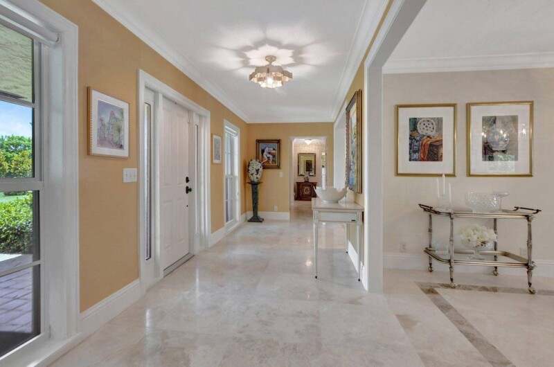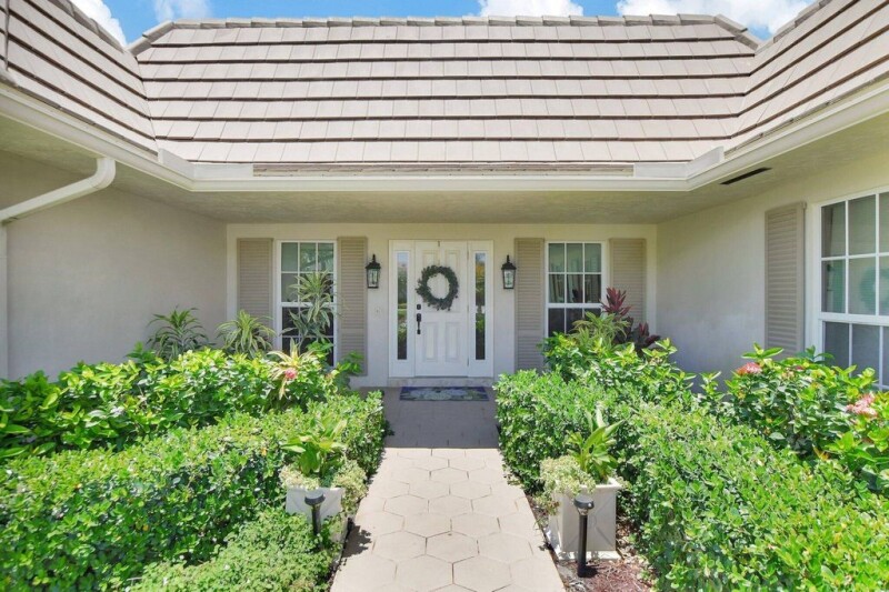 Introducing an exceptional and exclusive offering - a rarely available updated 4 bedroom, 3 bath home situated on a prime golf location. This property features over 3400 sf of interior living space, including a whole home generator for added convenience and peace of mind, as well as impact windows and doors for enhanced safety and energy efficiency. Step inside to discover a thoughtfully designed and spacious floor plan adorned with luxurious travertine floors throughout living and dining areas. The kitchen and family room showcase stunning Brazilian cherry wood floors, creating an ambiance of warmth and elegance. The open kitchen is a culinary enthusiast's dream, complete with a gas range and chef's cook island, perfect for entertaining and hosting memorable gatherings.