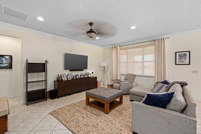 Beautiful, spacious 3/3 + Den in the resort-style community of Veranda Gardens. This two-level gem is filled with natural light and designed for comfort and entertaining. The main floor features an open Kitchen, Living, and Dining area, Sunroom, Home Office, Master Suite with Tray Ceiling, Walk-in Closet, Ensuite Bath with Granite Counters, Dual Sink & Shower, Guestroom, Full Bath, and Laundry.The Kitchen boasts Upgraded 42'' Cabinets, Granite Countertops, SS Appliances, and a Center Island overlooking the gathering room and an Extended Back Screened-in Porch. Upstairs, enjoy a Private Loft for added flexibility. Community perks include a gated entry, natural gas, a heated resort-style pool, fire pit, bocce, dog park, and sports courts. Conveniently located near Turnpike & 95.