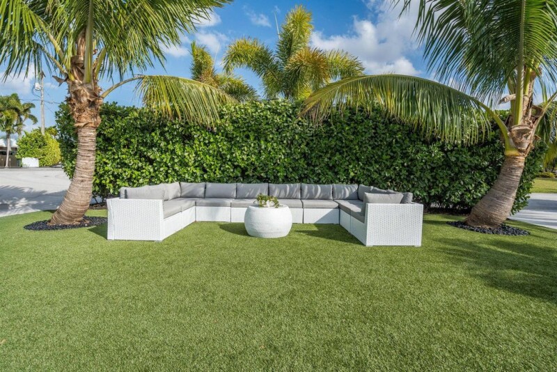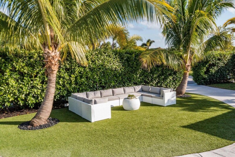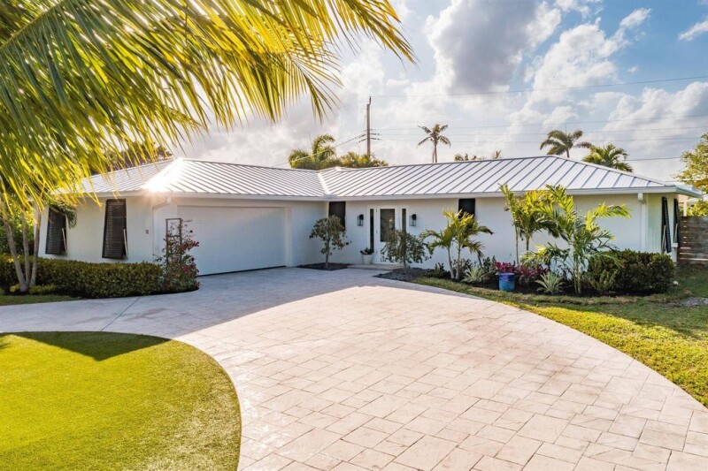 Welcome to Hitching Post Circle in the prestigious Turtle Creek Golf Club community. This property outshines any other Hunt Club interior lot, situated on the curve of Hitching Post Circle and Saddleback Road - home to multi million dollar waterfront estates. Every sunrise and sunset is visible from the entry glass door looking east with a view of the Loxahatchee River. From the generous front yard, oversized circular drive, turf grass, mature canary palms. coconut palms, fox tail palms, begonias and 12'-15' high clusia hedges adds beauty and incredible privacy. NEW white metal roof 2024, pure white exterior paint, NEW hurricane rated flush garage door. NEW impact 3/4 lite front entry door with full side lites adorned with a beautiful brushed gold Emtek entry handle.