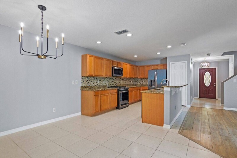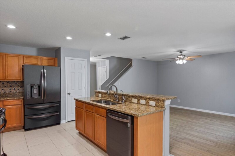 Beautiful 3 bedroom plus den, 2 1/2 baths, 2 car garage townhome in the highly desired community of Pointe West. This property is filled with upgrades including 2023 new roof, granite counters, island kitchen, newer stainless appliances, impact windows, freshly painted interior, new carpet, new light fixtures, and washer and dryer. Front porch for relaxing and enjoying a beverage, and private, fenced patio perfect for grilling. Property has a gas range and gas water heater. Medical and dental office in the community. Golf and social memberships available. Start enjoying the Florida lifestyle now.