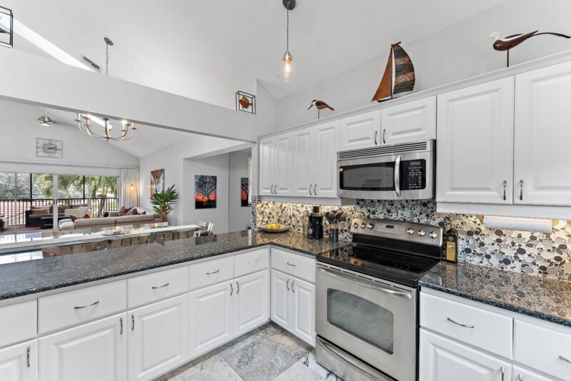 Nestled between Ocean Cay Park and the iconic Juno Beach Pier, this spacious four-bedroom, three-bathroom, two-level Beachcomber condo offers a premier coastal lifestyle. Just steps from a pristine, dog-friendly beach, Unit G3 boasts a new roof, new skylights, new impact rated windows, tankless water heater, and new washer and dryer. Elegant stone tile floors run through the open living area and kitchen which features coastal-inspired tile, stainless steel appliances, and granite countertops. A large screened patio, accessible from both the living room and master suite, provides the perfect space to relax after a beach day. With a gated entry, lush landscaping, and community pool, Beachcomber has it all in a prime location near shops and dining. An enclosed 1-car garage is included.