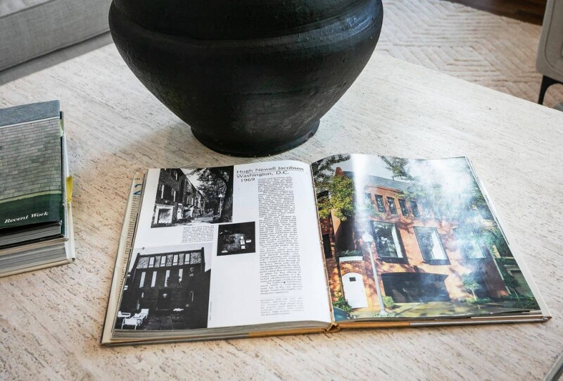 Introducing the newly renovated Trentman House in Georgetown’s East Village. This historic 4-story home preserves its original mid-century modern details while incorporating the latest conveniences and climate protection. The new chef’s kitchen is a culinary delight, equipped with Miele and Sub-Zero appliances and sleek white countertops. Bathrooms have been upgraded with elegant Spanish porcelain tiles and frameless glass enclosures, ensuring both style and comfort. Perfect for entertaining, the 2nd floor dining room flows through the living room and onto the landscaped private terrace oasis with a pond and waterfall. The 3rd and 4th floors feature three spacious en-suite bedrooms. There are two additional fully updated powder rooms on the 1st and 2nd floors. The network closet and internal wiring provide for media installations throughout the home. The garage and elevator offer an ease of living in this classic neighborhood across from Rose Park. Climate-adaptive comfort systems were added during the renovation, including new custom-built windows with energy-efficient glass, window coverings, additional insulation throughout, and new ventilation to keep the house efficiently cooler in the summer months and warmer in the winter. The home features striking design elements, including two soaring cylinders that house the winding stairs, and expansive skylights that bathe the interior in natural light. Like living in a work of art, the Trentman House is an award-winning masterpiece designed by renowned architect Hugh Newell Jacobsen. Built in 1969, this historic residence won the AIA Honor Award and was honored with Architectural Record’s #1 Award of Excellence for House Design, recognizing its significant contributions to architectural progress and quality of living. Its importance is underscored by the fact that the original architectural plans are preserved at the Library of Congress, marking it a notable landmark in modern design history. Stop by and imagine yourself sipping a beverage while the waterfall gently blocks out the world beyond the walls.