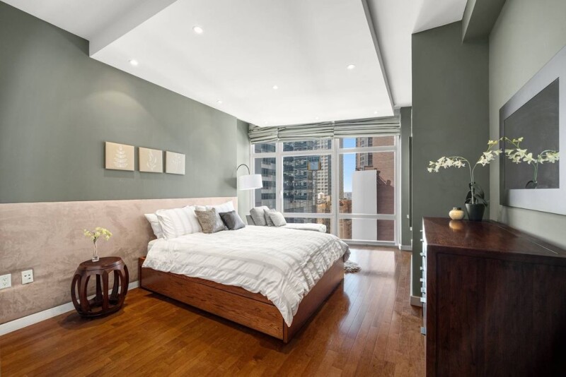High-Floor 2 Bedroom + Home Office with Time Square Views. This sun filled 2-Bedroom + Home office ( convertible 3rd bedroom ) Offer 1329 ft.² of sleek city living with floor to ceiling windows, framing, Time Square. Featured in top architectural magazine for its custom design, this smartly, configured home blends style and function. The open chef's kitchen boasts granite countertops, A full height, glass backsplash, Sub-Zero, Bosch and Miele Appliances, a custom wine fridge, and rich oak cabinetry with soft-close drawers. Built-in window seats in the living area create the perfect perch for evening cocktails. A flexible guest suite / den with a Murphy bed adds versatility. The king-sized primary bedroom suite features a walk-in closet and a spa like en-suite with a soaking tub, Limestone vanity, And stainless steel basin. A bright second bedroom, Full second bath and a Bosch in unit washer dryer, plus ample storage complete this fine home. Full-Service Living in the heart of NYC 1600 Broadway offers 24 hour doorman and concierge service plus Club on the Square* amenities: . Fitness center . Entertainment lounge with billiards, digital TV, kitchen and virtual golf . Business center and Conference room . Expansive wraparound Terrace . Rooftop terrace with front row view of the Time Square Ball Drop Moments from Broadway theaters, Rockefeller Center, Central Park, Fifth Avenue and top dining and shopping. Steps to multiple subway lines ( A, C, E, N, Q, R, W, 1, 2, 3,7) Call today for a private viewing!.
