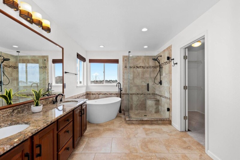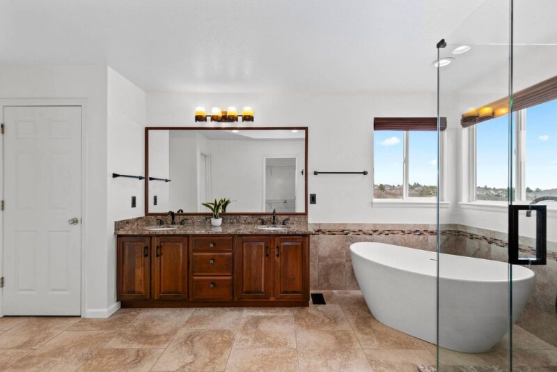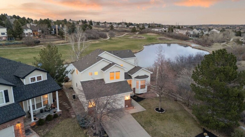 Experience breathtaking views and refined living in this beautifully updated two-story home, boasting over 3,400 sq. ft. of thoughtfully designed living space. Nestled along an award-winning, pristine golf course with a serene lake backdrop, this five bed, four bath residence offers the perfect blend of comfort and elegance. Enjoy the gorgeous Colorado sunsets and full lake and golf course views from your deck! Step inside to find newly refinished hardwood floors, fresh paint throughout, and plantation shutters that enhance the home's timeless appeal. The open-concept floor plan features a spacious living area, formal dining room, family room with gas fireplace, kitchen with island, double-oven induction range, and ample cabinetry. The expansive primary suite provides a peaceful retreat with stunning lake and golf course views, and a new bath tub. The finished basement adds valuable living space with a kitchenette, fireplace, and plenty of room for guests or entertaining. Outside, the south-facing orientation fills the home with natural light. Miles of walking trails are just steps from your front door! A home with such an amazing lake and golf course view is a rare find not only in the Castle Pines community, but in the Denver community as well!.