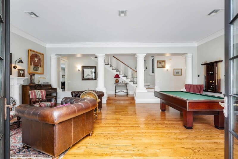 Exquisitely designed, this estate boasts a seamless layout, perfect for a luxurious and comfortable lifestyle within The Dominion. Built by Kenigstein, the home exemplifies tremendous quality and craftsmanship, featuring solid hardwood floors, custom architectural and ceiling details, and upgraded light fixtures. The chef's kitchen is equipped with stainless steel appliances, a gas cooktop, and a double oven/microwave, and it opens to a family room with high ceilings, double French doors, and a fireplace leading to the outdoor area. The master bedroom is a true retreat, complete with a double-sided gas fireplace, double Juliet balconies, a sun-filled bathroom, and a large walk-in closet. The three additional guest bedrooms are spacious and luxurious, ensuring comfort for all residents and guests. Exceptional outdoor living is provided by a lot with extensive hardscaping and decking, a premier Keith Zars pool, and mature landscaping throughout. The screened-in sunroom offers a perfect space for entertainment and enjoyment year-round, making this estate a remarkable sanctuary for discerning homeowners.