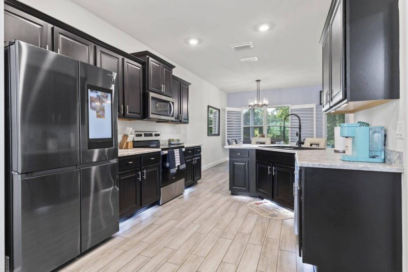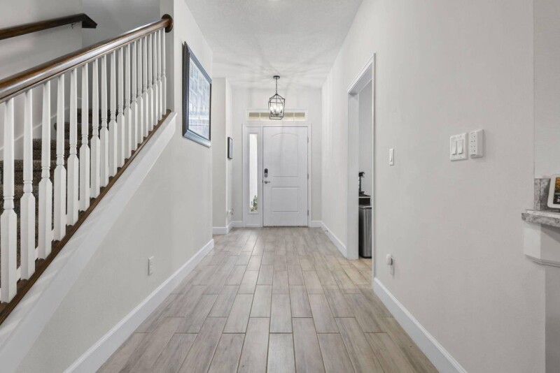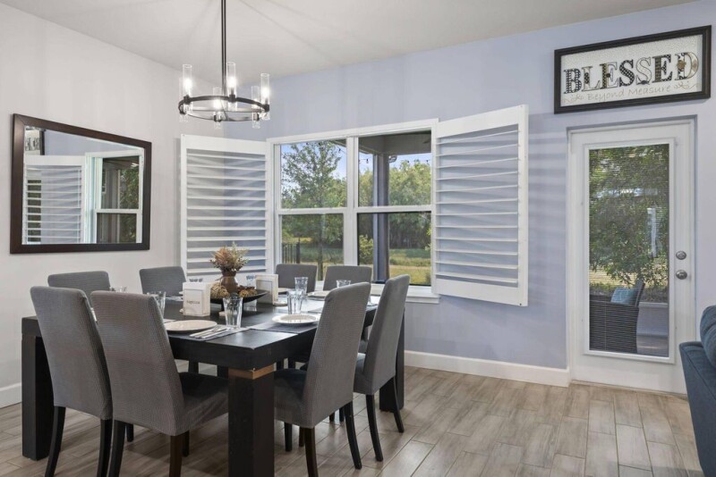 Stunning 5-bedroom, 3.5-bathroom home built in 2022, featuring the main bedroom conveniently located on the first floor, complete with a beautiful en suite that includes a separate shower and tub. Upstairs, you'll find four additional bedrooms, two of which shares a Jack and Jill full bathroom, providing both convenience and privacy. A huge loft area completes the upstairs space. The downstairs boasts beautiful wood-looking tile and plantation shutters throughout, creating an inviting atmosphere. The kitchen is equipped with upgraded appliances, including a Samsung 4-door Flex refrigerator with Family Hub and beverage center. The garage is equipped with a NEMA 14-50 outlet to accommodate any electric vehicle charger. This property backs up to a peaceful preserve and includes a beautiful,.