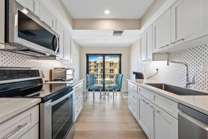 This completely renovated three-bedroom end-unit has incredible third floor Moorings Bay views from every room! Wake up each morning to the colorful sunrise and dolphins playing, and that evening walk directly across the street to put your feet in the sand and bask in the gorgeous sunsets Naples is known for. This bay-front retreat features a redesigned open floor plan, luxury white oak vinyl flooring throughout, recessed lighting, plantation shutters and so much more. Boasting an expanded kitchen with quartz countertops, decorative tile and glass backsplash, under-cabinet lighting, a large island, bar area and stainless steel LG appliances. Located directly on the Bay in The Moorings, Madrid Club just finished a complete remodel of their luxury amenities. Residents enjoy a beautiful bay-front pool and bbq area, party deck, stunning social room with full kitchen, library, fitness center, and kayak racks and launching pad. Boaters have the option to buy or lease a slip from another owner. Have peace of mind with impact windows and sliders, in-unit laundry, secure entrance, under-building parking, and onsite manager. Owners are allowed two leases per year with a 90-day minimum. After a day on the water, Madrid Club is only a short ride to the renowned dining and shopping at Venetian Village, 5th Ave S and 3rd St S.