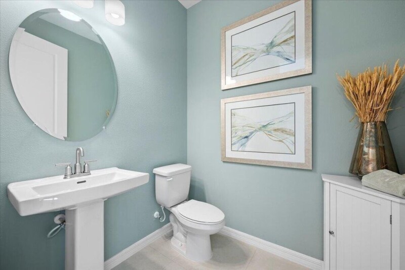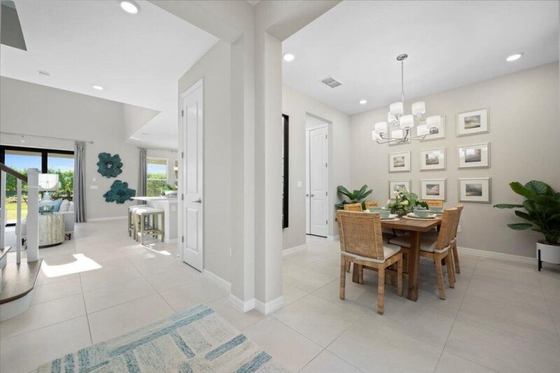 The main living area on the ground floor combines the kitchen, casual dining area, gathering room with two-story high ceiling, and dining room for an appealing open feel. The kitchen holds an angled island and pantry. A downstairs owner's suite offers convenience, privacy and style. Besides the bed, the suite includes two sizable walk-in closets. Upstairs, the loft overlooks the gathering room. This area is ideal for a computer area or sitting room. A study is entered from the loft. Three secondary bedrooms share two full baths. Structural options include: Gourmet kitchen, optional dog wash, outdoor kitchen, pocket sliding glass door.This model home purchase includes our Model Leaseback Program.* This program is perfect for buyers who want to purchase now but aren't ready to move.