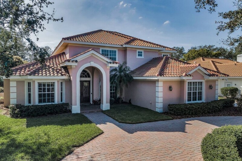 Immaculate two-story, custom estate home in the prestigious Bayou Country Club! On the 10th fairway with five bedrooms and four full baths, plus a study/office and a large 21-by-15-foot bonus/game room too. A nice, open floor plan and incredible volume ceilings. New tile roof in 2021 and exterior and interior of the home have been freshly painted. This home is designed with exceptional features including a large balcony deck overlooking the golf course, paved circular driveway and an oversized, side-entry three-car garage that features, wall-lined storage cabinetry, epoxy flooring, work-bench area and additional outside parking too. Three sets of French doors take you from the inside of the home to the large, heated, swimming pool which is designed so it can be used as a volleyball pool and includes a heated spillover spa. The entire pool deck has been done in pavers and features a built-in grill with refrigerator, along with a nice, outdoor, covered sitting area, all situated beside a full-grown mango tree. The interior of the home is enhanced with surround sound with individual room controls, new, LED pool lighting with color control for creating fun and entertaining, nighttime atmospheres. The Bayou Club is a great, centrally located country club community with security, a 24-hour guard-gated entry and featuring a private Tom Fazio signature golf course along with tennis, pickleball, clubhouse and fitness facilities.