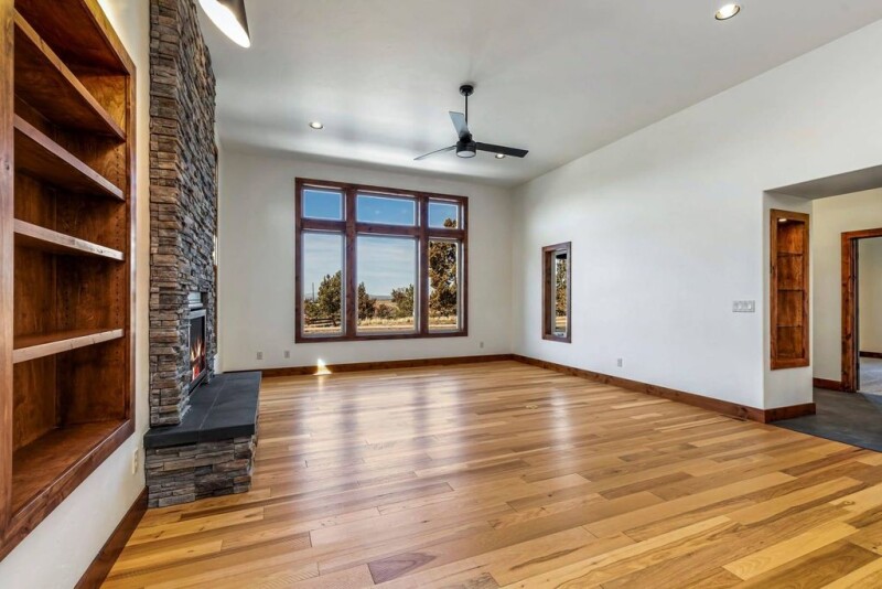 This brand-new, custom contemporary 2126 sq ft home offers an unparalleled blend of sophistication and comfort. The single level, open floor plan, accentuated by vaulted ceilings, a cozy gas fireplace, and Hickory hardwood floors throughout. The oversized windows bathe the interior in natural light, creating an inviting and airy ambiance. The kitchen, a chef's delight, features stainless steel appliances, custom cabinetry providing ample space for entertaining. Retreat to the primary suite, with a tiled walk-in shower, dual vanities, and a large walk-in closet. Outside, enjoy the covered patio and the zero-scape landscaping with views of the neighborhood open space. The spacious 3-car finished garage provides ample storage and convenience. The quiet neighborhood is close to walking trails.