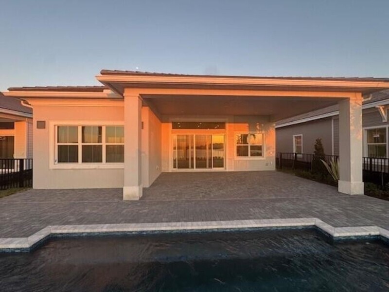 This Maya Contemporary truly has it all, featuring an open floor plan that seamlessly connects every living space making it perfect for both relaxation and entertaining. The chef-designed kitchen is equipment with tope of the line appliances and a large island, ideal for preparing meals and hosting guests. The luxurious primary bath is a true sanctuary, offering a freestanding tub that invites you to unwind. Every detail has been thoughtfully curated to create an atmosphere of comfort and elegance. The sparkling pool is a true highlight, offering an unobstructed view of the breathtaking lake and fountain. Regency is a manned gate active adult (55+) community with its own private 20,000+ clubhouse full of amenities. Includes 10-yr structural, 2-yr mechanical/plumbing & 1 yr fit & fitness.