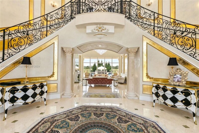 Welcome to "Bella Maison", a 2-story estate in the gated community of Windmill Reserve, Weston FL. 8BR/8FB/2HB, 4-car garage, Travertine circular driveway, on protected natural preserve w/ western sunsets. Marble & wood flooring, incredible gourmet kitchen, large island, walk-in pantry, granite, Wolf gas range & high-end appliances, 2 new Bosch dishwashers. Featuring home theater, game room, gym, elevator, bar/billiards room, office study, sunroom, up/down laundry rooms, 5 marble fireplaces & impact glass and doors. Owner's suite w/ vast walk-in closets. French-renaissance style w/hand-painted artistry, crown moldings, gold/silver leaf foil & murals, 3 balconies, 2 fountains, decorated lions, lush landscape, heated pool & spa. *New roof in 2015. *5 new A/C units. This home is a must-see!.