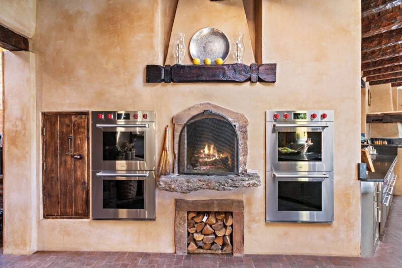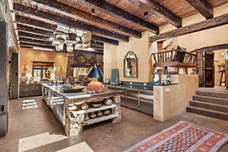 The ultimate hideaway home in Santa Fe High in the pines, fresh flower blooms, verdant grape vines and full apricots fruits beckon you to discover the bit of paradise. You are above allergies, crowds and pollution here. Through these doors, discover what is arguably the finest example of a Colonial Pueblo home in New Mexico atop very private mountain location with all the stars at night and your days filled with beautiful views. Thoughtfully designed, it boasts the finest finishes, hand-plastered double thick adobe walls, hand-carved beams with a massive 36 foot long 160-year-old Amish beam and hand carved 3 1/2 " thick doors from around the world. Windows trimmed with massive native rock, 8 heart-warming fireplaces and radiant-heated brick flooring. The spacious open floor plan features a chef's kitchen with 16 Sub-Zero drawers, Wolf appliances and an 18-foot island. Two elegant bedroom suites are well separated for privacy. An attached casita office/third en-suite bedroom offers work or guest accommodations. Spacious portals are everywhere. Gated access provides privacy and security. Three lucky vehicles are sheltered in an oversized garage with adaptable work areas. Enjoy nature and wildlife on the hiking and walking trails. This is a magical Santa Fe escape and an opportunity not to be missed just 15 minutes from the town center. Truly special.