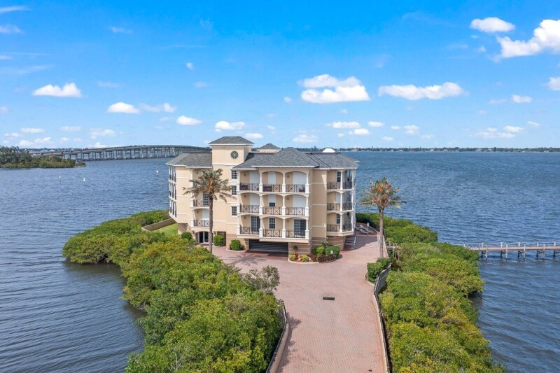 Breathtaking panoramic views of the Intracoastal Waterway in this rarely available luxury 3rd floor condo! Sitting on its very own waterfront peninsula, this private gated 4100 SF, 3 bedroom, 3 1/2 bath property is uniquely located within walking distance to Historic Downtown Melbourne and just minutes to the Beaches. With easterly breezes to your back you can take advantage of the nearly 200' of wrap-around balconies as you watch the sunrise and sunset from nearly every room. Every aspect of this property exudes luxury from the private elevator vestibule, custom gourmet kitchen, extra large living and dining spaces, and a primary bedroom with a huge walk-in closet and dressing area. Additional bedrooms all with en-suite baths and walk-in closets are spacious with high ceilings. Amenities include a 38ft dock with power and water, A beautiful pool overlooking the river and two private garage spaces. With only 6 total units, privacy is paramount! Come and see for yourself!.