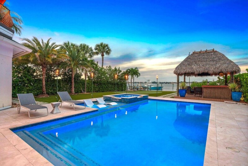 A unique enclave positioned with sweeping views of the serene blue waters of the Loxahatchee River. Discover an inviting ''Island'' inspired design flowing through to the widest view of the river, nestled on a waterfront site with lush tropical landscaping. This enclave sits on 16,274 sf lot, offering 5,054 sf of total space, 4 bedrooms (5th BR is currently office), 4 bathrooms, with a spacious 3 bay climate-controlled garage. Offering a 50 foot upgraded dock complete with dual boat lifting capacity of 8K and 12K LBS. and modern seawall. Outside amenities include a heated saline Gunite swimming pool with sun soaking area, hot tub, professional putting green with a ''Tiki Hut'' that has been outfitted with bar and television.