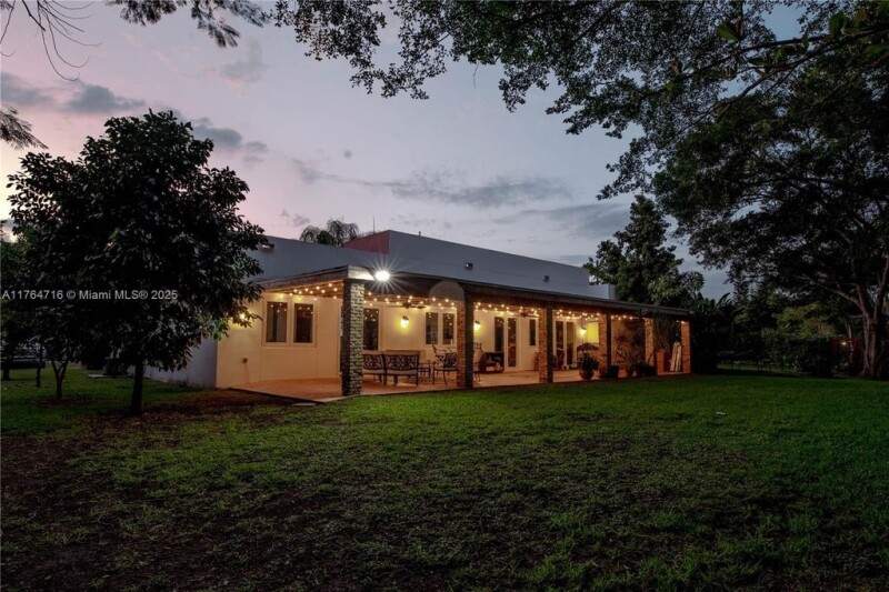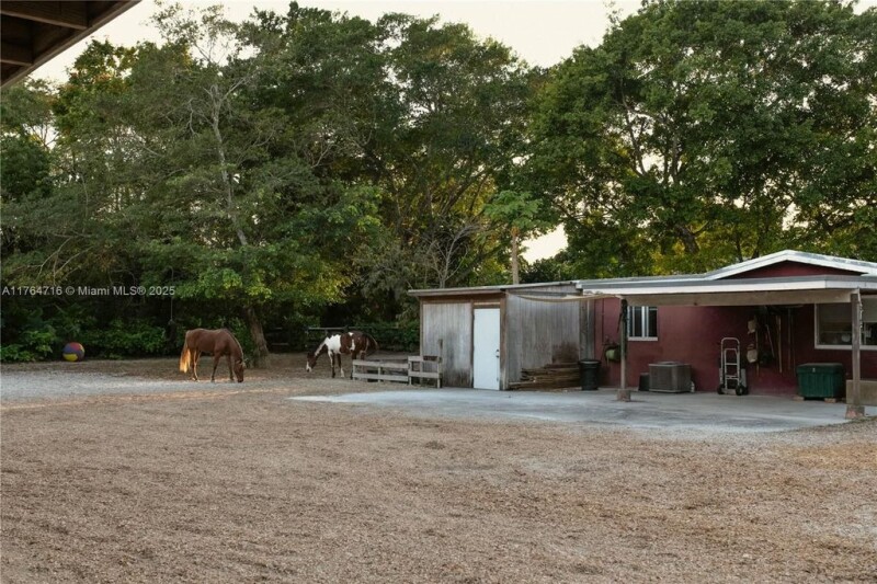 Exceptional 4-bed, 4-bath estate in East Kendall, Miami, with a detached 2-bed, 1-bath guest cottage on a 1.05-acre lot with a horse farm. Built in 2012 with hurricane-resistant concrete construction, it features 12-14 ft ceilings, impact-resistant windows, and a whole-house generator. The interior boasts modern systems, a luxurious primary suite, and an open-concept great room with a gourmet kitchen. The grounds include a 3-stall barn, a 1,000+ sq ft patio, and lush landscaping with fruit trees, all zoned agricultural. The guest house offers independent living with a gourmet kitchen, a spa-inspired bath and outdoor shower. Tech-savvy and sustainable, this estate blends tranquility with accessibility, minutes from shopping and amenities. A rare, secure retreat with long-term value.