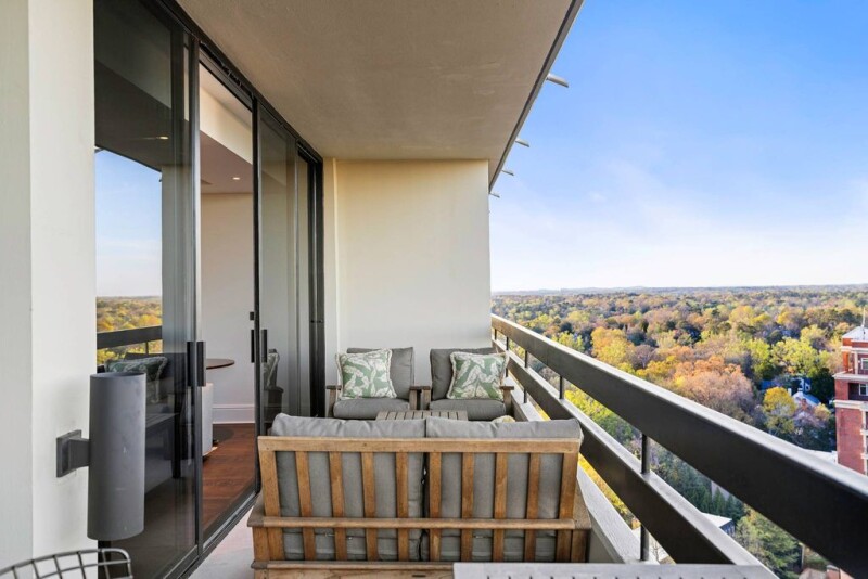 Among Buckhead’s skyline, one residence rises as a masterclass in design integrity, craftsmanship, and panoramic elegance. Residence 26F at Park Place is not merely renovated—it has been completely reimagined through a full-scale architectural demolition and reconstruction, elevating it to a level of luxury rarely achieved in vertical living. Occupying 2,400+ interior square feet—complimented by two expansive terraces—this high-floor home opens with a grand private vestibule and a set of custom double French doors unique to this residence. Once inside, a curated spatial experience unfolds: the 30-foot grand salon integrates seamlessly with formal dining, a sculptural kitchen, and a designer wine bar—all oriented to embrace uninterrupted views of Buckhead, Stone Mountain, and Kennesaw Mountain. The interior architecture is restrained yet expressive. Site-finished, wide-plank American white oak floors span the residence, complemented by solid-core two-panel doors, custom millwork, and 75 precision-placed LED recessed fixtures. Floor-to-ceiling glass panels—newly replaced for energy efficiency and clarity—draw the eye to Atlanta’s ever-changing skies. At the heart of the home, the kitchen is anchored by honed Calacatta Gold Statuario marble and Morgan Creek custom cabinetry. A Sub-Zero wine column, Sub-Zero refrigeration, Wolf induction range, and Miele dishwasher affirm both function and finesse. Brizo fixtures, an EverPure filtration system, and Matthew Quinn hardware heighten the tactile and visual experience. The primary suite is a refined retreat. Wake to the soft light of Stone Mountain, framed through new glass doors that open onto the private terrace finished in Jerusalem Limestone. Inside, a bespoke walk-in closet pairs with an indulgent bath wrapped in Carrara C marble—complete with heated flooring, a nine-foot vanity, and a monumental seven-foot shower. Wallpaper by Schumacher adds texture and tone. The secondary suite—currently purposed as a den—boasts custom built-ins, dual closets, and a second terrace access. Its en-suite bath mirrors the primary in finish quality, creating a truly balanced two-bedroom offering. Every mechanical system has been replaced: new ductwork, wiring, fire sprinklers, plumbing, and a state-of-the-art geothermal HVAC system with air scrubber and humidifier. CAT 6c ethernet cabling ensures whole-home streaming, networking, and smart home capability. Park Place itself has just completed a $15M renovation, including all amenity spaces and a redesigned porte-cochère. Few condominiums offer such gravitas, such scale, or such a polished intersection of history and innovation. For those seeking an uncompromising standard of living—with the enduring value of a legacy address—this is a singular opportunity.