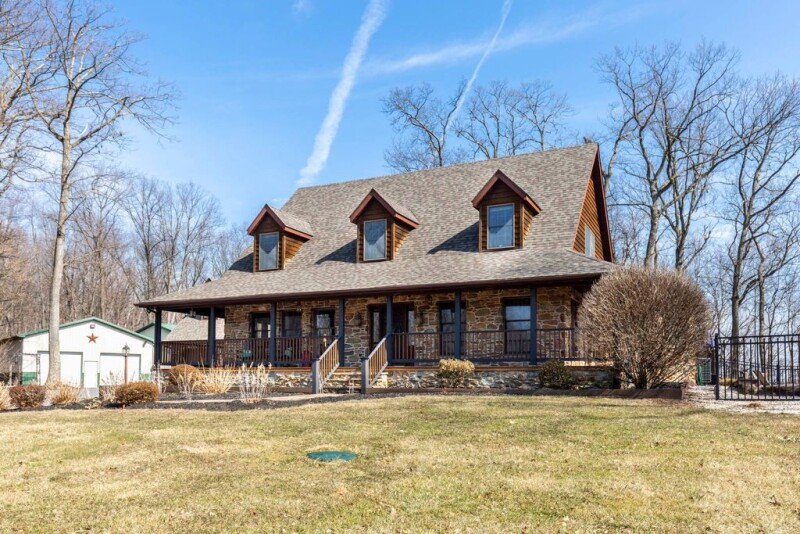 Discover your own private oasis with this stunning Cape Cod home, featuring elegant stone and cedar siding. As you arrive, a sense of tranquility will wash over you. Nestled in a peaceful setting, you can unwind on the covered front and side porches or step into the serene backyard, where a spacious deck and patio overlook a soothing saltwater inground pool and a stocked pond. Inside, this beautiful four-bedroom home offers a bright and airy sunroom, along with a main-level master suite for ultimate convenience. Quality Anderson windows, a wood-burning fireplace, enhance a perfect location to enjoy a quiet evening in one of three entertaining areas within the main home. Need more extra space, the detached in-law suite includes a bedroom, one and a half baths, a full kitchen, and a private second-level deck, perfect for guests, a home office, a creative studio, or even an exercise space. For those who love to entertain or showcase their prized possessions, the grand pole buildings on this property are a dream come true. The impressive 40-foot x 80-foot detached building features stained concrete flooring, a striking faux stone fireplace (16-foot x 12-foot), and an 82-inch TV, ideal for gatherings or displaying your collectibles. An additional heated and air-conditioned 30-foot x 40-foot building offers even more possibilities, and one lift is included in the sale. With the owners planning to downsize in late May or early June, you will be able to enjoy this exceptional property and all its outdoor amenities all summer long.