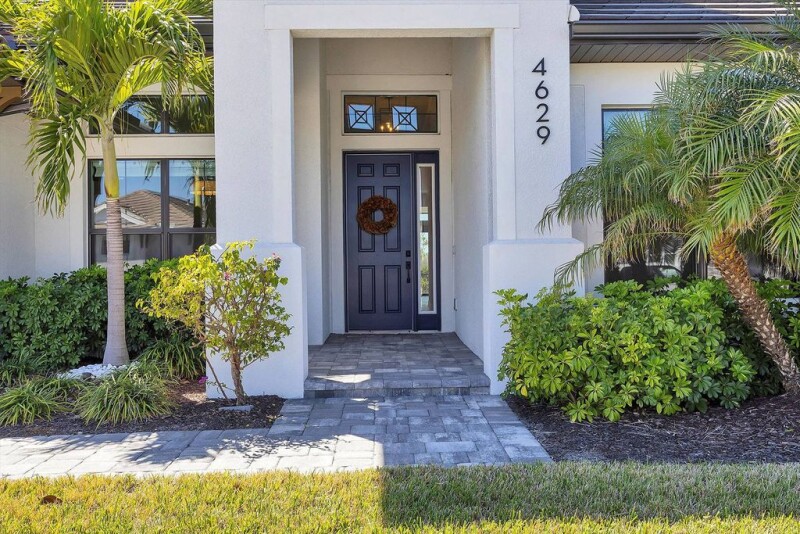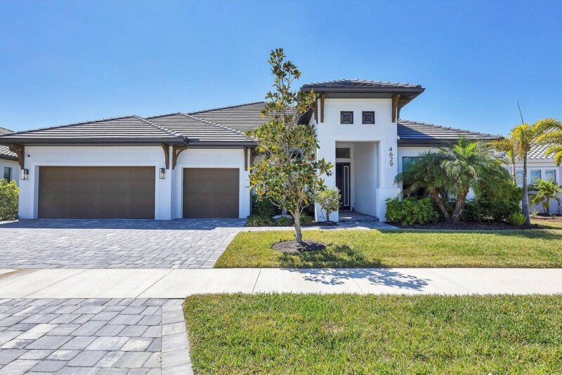 Step into a world of refined elegance with this extraordinary residence in Worthington, one of East Sarasota's premier gated communities. Built in 2021 by Cardel Homes, this Henley floor plan offers nearly 3,000 square feet of impeccable design, seamlessly blending modern sophistication with serene comfort. From the moment you arrive, dramatic landscape lighting illuminates the mature palm trees, creating a breathtaking ambiance that sets the stage for this exceptional home. Inside, soaring 10- and 12-foot ceilings accentuate the open and airy floor plan, while four spacious bedrooms, a private den, and three luxurious baths offer an effortless balance of style and functionality. Designed for everyday living and grand entertaining, the great room exudes warmth and sophistication, enhanced by elegant tray ceilings and integrated surround sound. The gourmet kitchen is a masterpiece featuring quartz countertops, unique pendant lighting, an exquisite backsplash, extended double-stacked cabinetry, a walk-in pantry, high-end stainless-steel appliances, a gas range with a designer vent hood, and an expansive island with additional storage beneath. Open to the kitchen, the dining area is filled with natural light, while the sliding glass doors seamlessly blend indoor and outdoor living. The primary suite is a private sanctuary, where tray ceilings and serene views set the tone for relaxation. The spa-inspired en-suite bath is a retreat of its own, featuring a glamorous soaking tub, dual vanities, a spacious walk-in shower and two expansive walk-in closets, complete with a dedicated vanity space. Step out to the lanai, where outdoor paradise awaits. The heated saltwater pool and spa invite relaxation, surrounded by the paver pool deck with a full outdoor kitchen, complete with a stainless-steel grill, refrigerator, sink, and ample dining and living space. The three-car garage provides ample storage, enhanced by an overhead rack storage system, additional cabinetry, a utility sink and even an ionizing system for the air conditioning. Other exceptional features include remote-controlled shades for the sliding doors, a remote-controlled storm screen on the lanai and impact glass throughout. This residence is also not in a flood zone and untouched by hurricanes, according to the owner. Ideally just 20 minutes from Siesta Key Bridge and downtown Sarasota, and only 10 minutes from UTC's premier shopping, dining and entertainment, this home offers an unparalleled blend of luxury and convenience. With low HOA fees and no CDD, it presents a rare opportunity to own in one of Sarasota's most ideally located communities. This home offers the ideal blend of luxury and convenience.