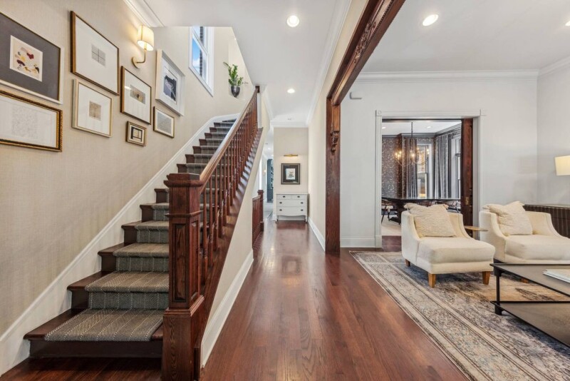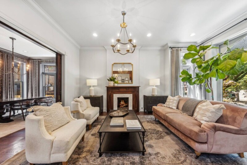 Built in 1889, this stunning Wicker Park home underwent a meticulous renovation in 2018 that preserved the building's historic charm while seamlessly blending it with timeless design and an updated floor plan suited for today's living. Situated on a quiet tree-lined street on an oversized 32' x 125' lot just steps to everything Wicker Park has to offer. Upon entering, you immediately take in the historic details of the home which include 10' ceilings, oversized windows, original woodwork and 4 wood burning fireplaces. The intimate dining and living rooms can be closed off with the original pocket doors. The chef's kitchen features an oversized marble island which allows counter seating for 5 people and an abundance of prep space. It's the perfect space for entertaining, with the adjacent family room allowing ample space for gathering. The family room features a custom folding glass door which fully opens to the back deck and patio, combining indoor & outdoor living. Upstairs, the spacious primary suite features an enormous walk-in closet and a stunning marble-clad bath complete with walk-in shower and soaking tub. Two additional generously sized bedrooms with en-suite baths and laundry room are also found on the 2nd floor. The basement, which was excavated to allow for increased ceiling height and improved natural light, features a large recreation/media room with built-in banquet and bar area. Two additional bedrooms and full bath are also found on the lower level. The secluded back patio provides additional living and entertaining space and can be enjoyed into the cooler months with help of the outdoor fireplace. Potential for new owners to add garage top deck for even more outdoor space.