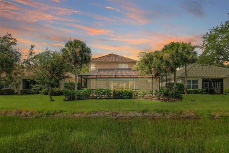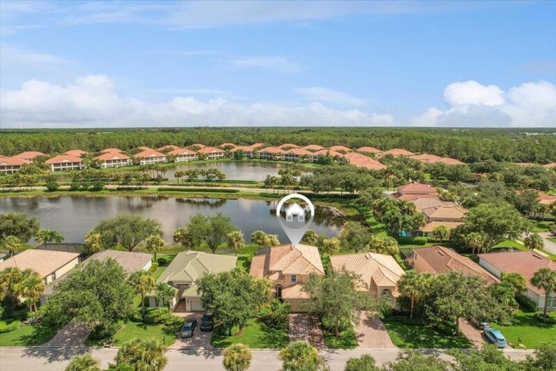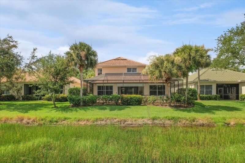 Priced over $50,000 less than the appraised value. This Beautiful & Meticulously maintained Bedford model home offers a 2020 cement tile roof, peaceful lake frontage & located within desirable Hawthorne. As soon as you enter the home, you are greeted with glorious views of the pool and lake. 1st floor Primary bedroom suite & additional bedroom. Open kitchen with 42” tall wood cabinets, Roll out drawers in cabinets, 2022 Kitchen Aid appliances. Glass doors thruout lead to an expansive screened porch featuring a pool with water features, serene views of the lake & is perfect for indoor/outdoor living. Other offerings: Large loft, roll down shutters, vinyl flooring. Guard Gated Community with Resort style amenities. DR chandelier, dryer & washer do not convey.