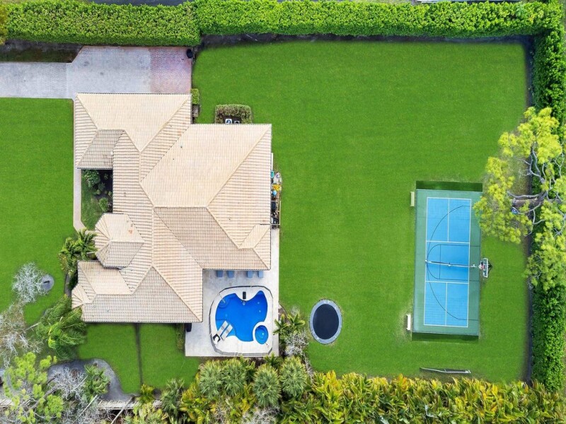 Welcome to 5755 NW 72nd Way, in the highly sought after community of Pinetree Estates, nestled on a lush 1-acre lot. Spanning 3,232 Sq. Ft., this meticulously maintained residence boasts 14-ft voluminous ceilings throughout, creating a grand and airy ambiance. Step inside to find elegant marble flooring in the main living areas, complementing the spacious floor plan. The grand primary bedroom offers a private retreat with luxurious finishes, while the additional bedrooms provide comfort and versatility for family and guests. Designed for both relaxation and entertainment, the outdoor space features a resort-style pool and spa with a travertine pool deck. Enjoy an active lifestyle with the newly added sports court, ideal for pickleball and basketball.