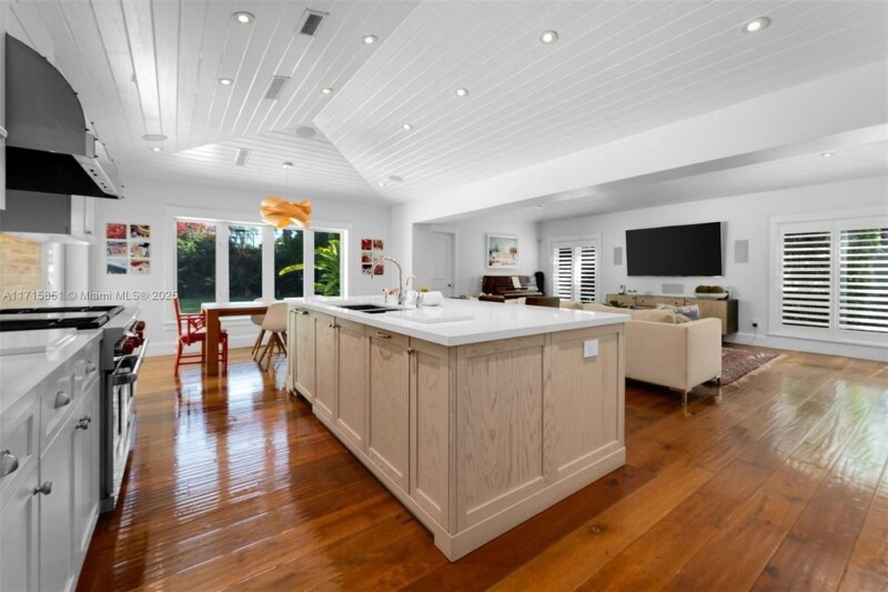 Beautifully renovated 5-bedroom, 4.5-bathroom 6,687 SF home on a spacious lot and quiet tree-lined street in Pinecrest. The residence exudes tremendous curb appeal, and an open layout and vaulted ceilings provide lots of natural light. The impressive eat-in kitchen features custom floor-to-ceiling cabinetry, high-end Wolf and Sub Zero appliances, gas range, large pantry, and an expansive center island with seating and storage spaces. The interior seamlessly connects to outdoor entertainment areas, a spacious covered patio, barbecue, pool, jacuzzi, and plenty of green space. Additional features include impact windows and doors, whole house generator, gym, two offices, ample parking with two garages, and a metal roof.