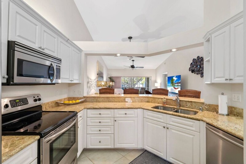 Discover your dream coastal retreat at Barrington Club. This is an incredible opportunity to own in one of Naples premier communities, offering luxury coastal living at one of the most attractive price points in Pelican Bay. This beautifully appointed two-bedroom-plus-den condominium is ideally on the top floor of a charming two-story building. Designed for comfort and style, the bright, open layout features abundant natural light. This home is offered furnished with a few exceptions. The spacious living area seamlessly extends to a private balcony, where you can unwind while overlooking the serene water feature. The versatile den/flex space is an ideal guest retreat or home office. Thoughtful details include a pantry, in-home laundry room, ample storage and an attached one-car garage enhancing everyday convenience. As a resident of Pelican Bay, you'll enjoy unparalleled amenities, including miles of private beach, two beachfront restaurants, a state-of-the-art fitness center, tennis and pickleball courts. Scenic recreational and biking trails wind throughout the community, offering the ideal setting for an active lifestyle.