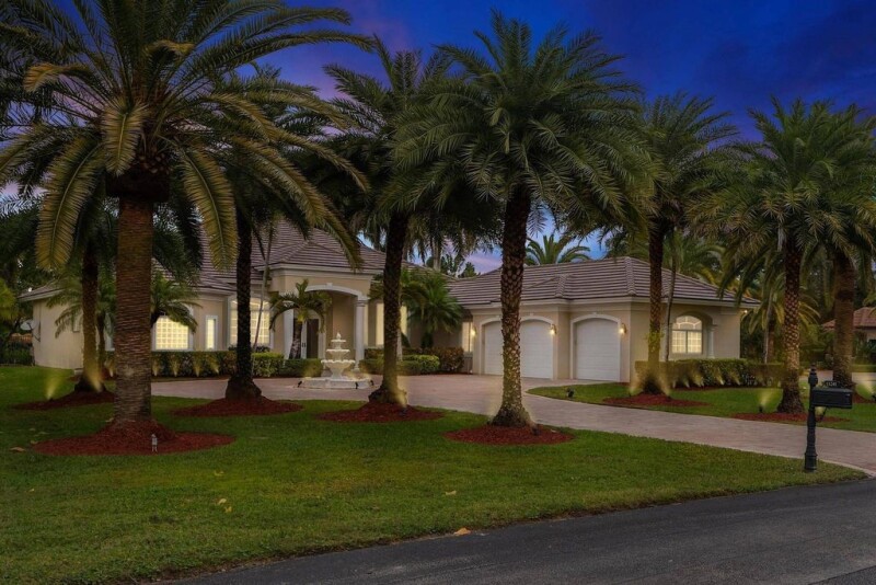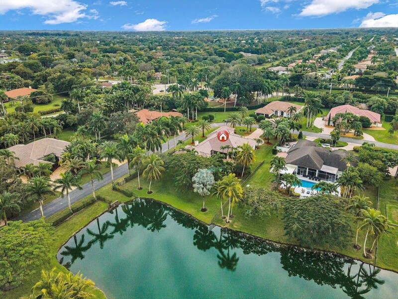 Situated in the exclusive 27-home gated community of Crystal Groves Estates, this custom-built home on a fenced builder’s acre, corner lot offers breathtaking lake views. This back living area was created for a resort-style entertainment featuring a pool with waterfall, raised spa, poolside bar, and covered patio with European Tumbled Marble. Enjoy lush landscaping, a built-in fire pit, and a cozy indoor fireplace. Impact windows/doors, electric Rolladen shutters, a Generac 22k WiFi-enabled generator, and a new flat tile roof provide peace of mind. Split floor plan with a spacious main suite, maid’s quarters, office, and entertainment area. Formal dining room, white quartz countertops throughout, and stainless steel appliances complete this stunning home. Abundant natural light!.