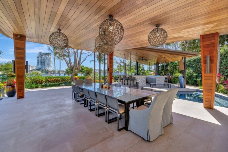 Magnificent two parcel .82 acre Idlewyld waterfront Estate, over 14,000 sf total. Ultimate deep-water compound! 328ft+/- straight-line deeded waterfront (no wake) & two separate docks! Main house entirely renovated & expanded 2012. In 2018, separate guest house added (approx 2,300sf) + 2,500sf pool pavilion, dining area & bar seats 18, caterers kitchen, cabana, gym, office & 3 car garage. Walled & gated for privacy & security, spectacular Award winning grounds & rare tropical landscaping. Two pools & spa add to private resort ambiance! Designed exclusively for boating & entertaining! Timeless Marc Michaels design throughout, custom detailing & high quality finishes. Main house has 2,000sf+/- covered outdoor living area off Chef's kitchen (potential apartment over additional 3 bay garage).
