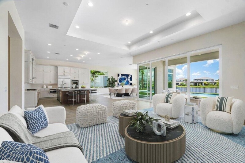 Welcome to your dream home in the prestigious Coral Isles of Avenir! Never lived in! This brand-new, 2024-built residence on a premium lot with lake view offers nearly 4,000 square feet of luxurious living space. Thoughtfully designed for modern comfort, Kenco's Cozumel floor plan features 3 beds/3.5 baths, a den, and 3 car garage. This extremely open design seamlessly integrates the living, dining and kitchen areas - perfect for entertaining! Gourmet kitchen features a large center island, GE monogram appliances, including a double oven and gas stove. Primary suite offers his and her closets, dual sinks, a large walk in shower/soaking tub, and breathtaking lakeside views. Enjoy relaxing under the covered patio or poolside in your very own tropical oasis situated on just over .25.