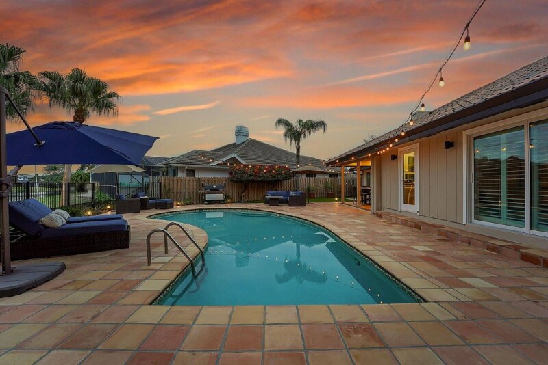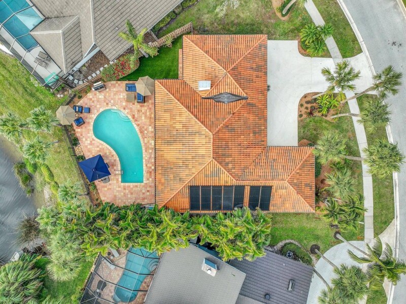 Spectacular Sunset Lake Views! Renovated One Story Home w/Designer touches. 3 Bedrooms, 2.5 plus Den split floor plan home is flooded with Natural Light. New Impact Windows & Front Door installed in 2024. New gourmet bar w/double beverage coolers. Gourmet kitchen w/European Custom Cabinetry, SS Appliances, Granite Counters. Remodeled Bathrooms. Living area presents with 7'' wide plank Oak floors. This Home is an Entertainer's delight with an outside built in wet bar & Ice Machine. Market lighting across the patio. Mature lush landscaping. Smart Home Tech includes Wi-Fi controlled sprinkler system, garage door, and most switches in home. Extended driveway to host all your guests. Frenchmen's Landing is a gated community with a gazebo and stocked pond. Fishing is.