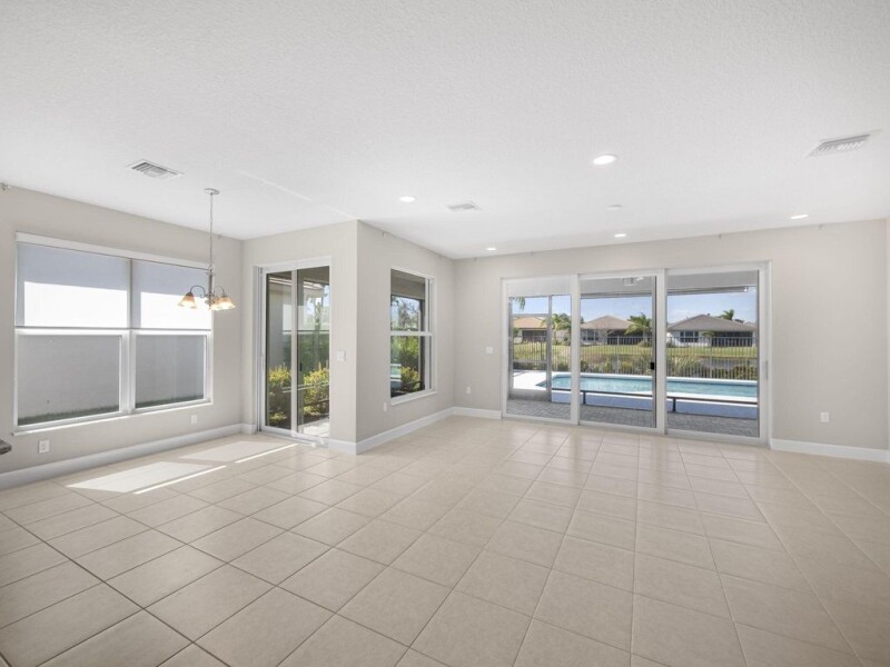 Welcome to this exquisite Bimini Model pool home located in the highly sought-after Valencia Cay at Riverland. This spacious 3-bedroom + den, 3-bathroom residence boasts a thoughtfully designed layout, blending modern luxury with functionality. The home is ideally situated on a premium lakefront lot, offering stunning, unobstructed views of the tranquil water and lush surroundings. Upon entering, you'll immediately notice the remarkable upgrades throughout. The kitchen and master bathroom have both been enhanced with custom cabinetry, elevating the space with stylish finishes and extra storage. The chef-inspired kitchen is equipped with upgraded, high-end appliances, perfect for creating delicious meals while enjoying the open concept design.