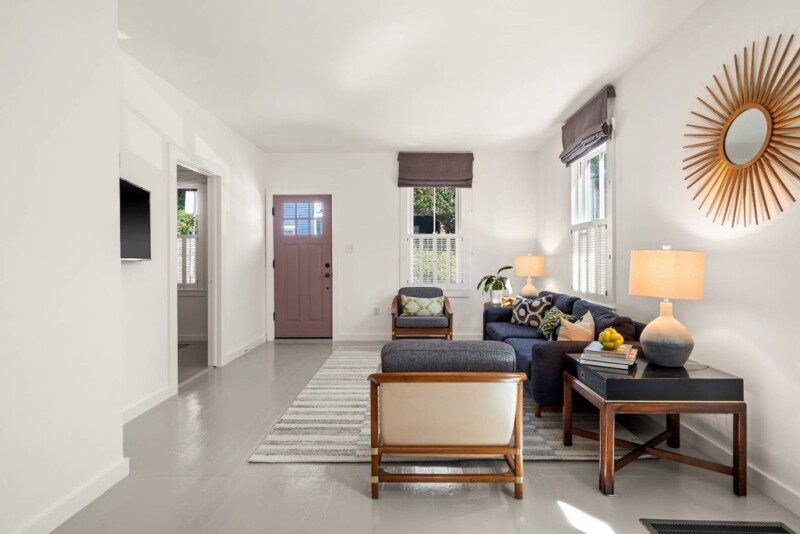 Blending the timeless charm of a storybook cottage with the on-trend aesthetics of a modern bungalow, 619 Main Street is a perfect fit for those seeking a fun, stylish and ideally located retreat. Despite its size, this adorable home offers a smart layout that makes the most of its space, with inviting outdoor areas and versatile bonus spaces that expand the living experience. A welcoming front porch, with a perfect view of Angel Island, and beautifully manicured landscaping offer great curb appeal. Inside, the vibrant main level features a bright and airy living/dining area, two cozy bedrooms, well-appointed kitchen, versatile office area, and a chic bathroom. Step outside to the backyard oasis, where a spacious deck leads down to a level yard with a fire pit and a freestanding studio — ideal for a home office, art space, or yoga retreat. The backyard’s mature trees, including a fruit-bearing lemon tree, add to the lush and private ambiance. Below, the basement provides extra flexibility with a laundry area, storage, and an unexpected bonus room with an electric fireplace — perfect as a library or entertainment lounge. Extensively remodeled over the years with new plumbing and electrical, double-pane windows, a new roof, and high-end appliances including a Bertazzoni range, Café French door refrigerator and Miele dishwasher. Outside improvements include a stone patio, exterior lighting, and spectacular landscaping. Recent updates bring a sophisticated touch, with a new bathroom vanity and contemporary kitchen upgrades including new quartz countertop, modern workstation sink, and sleek hardware. Freshly painted inside and out, the home is move-in ready. A great alternative to a condo, this hip, cheerful and eclectic home is located in the heart of Old Town Sausalito, just moments from the waterfront, and a short distance to shops, restaurants, and ferry.